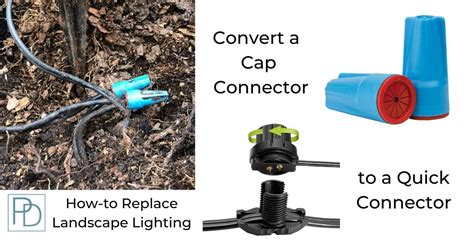 Replacing landscape lighting quick connectors replacing an old landscape lighting fixture and don t know how to install the new quick connectors on old wiring you ve bought a brand new led landscape lighting fixture with a screw or quick connector but have old wiring with the typical electrical cap connections and are baffled on how to install